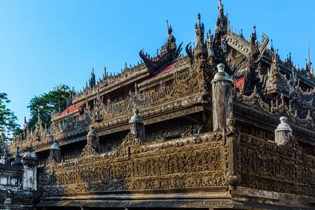 Ancient Teak Wooden Monastery of Shwenandaw Monastery or Golden Palace Monastery in Mandalay, Myanmar