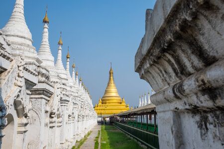 The Hsinbyume pagoda with the green tree and bluesky, the famous landmark of Sagaing Region near Mandalay, Myanmar