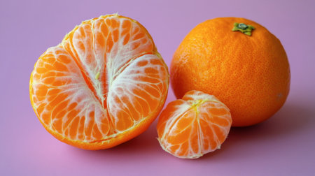 Freshly peeled tangerine sections alongside whole citrus fruit, highlighting healthy eating choices and natural food concepts
