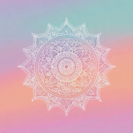 Intricate white mandala design centered on a soft, pastel-gradient background