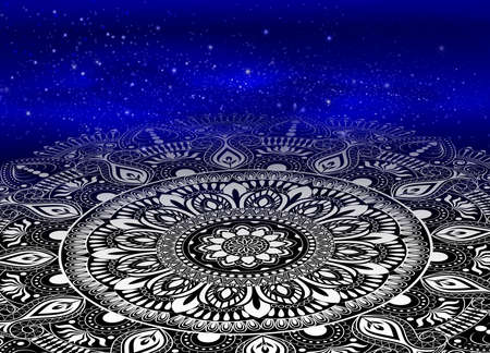 mandala on galaxy background. Decorative ornament in oriental style. Mandala with floral patterns. Beautiful lined design in vintage