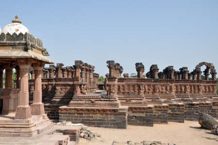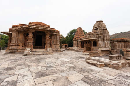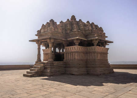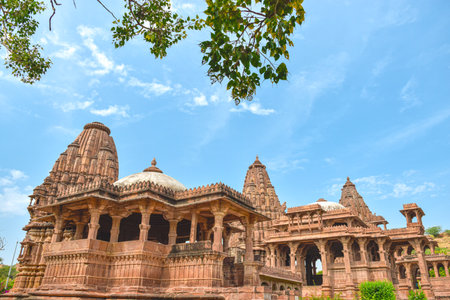 ancient hindu temple architecture with bright sky from unique angle at day shot taken at mandore garden jodhpur rajasthan india.