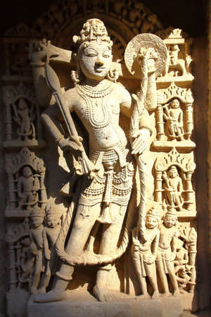 PATAN, GUJARAT, INDIA: Rani ki Vav stepwell with ornate carvings on walls