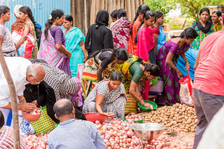 PUTTAPARTHI, ANDHRA PRADESH, INDIA - JULY 9, 2017: Indian market. Copy space for text