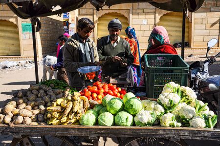 Jaisalmer, India - Dec 31, 2019: Traditional indian street market in Jaisalmer Rajasthan, India