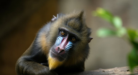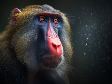 Mandrills intense gaze in natural habitat for wildlife awareness campaign