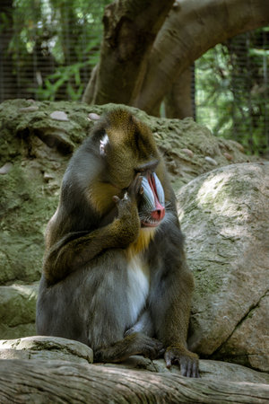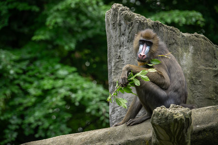 wild mandril monkey in forest