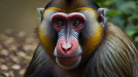 Mandril lmonkey close up portrait created with Generative AI technology