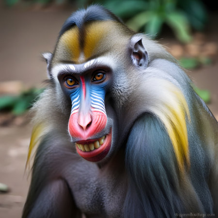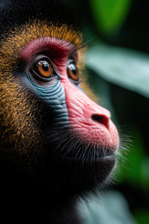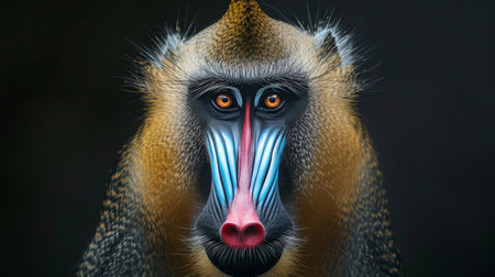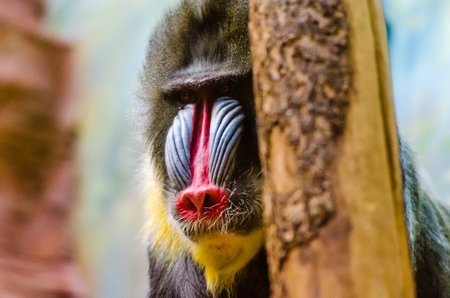 mandrill monkey portrait, tropical primate with a colorful face