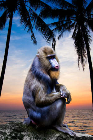 Mandrill Monkey portrait at sunset. Portrait of a mandrill.