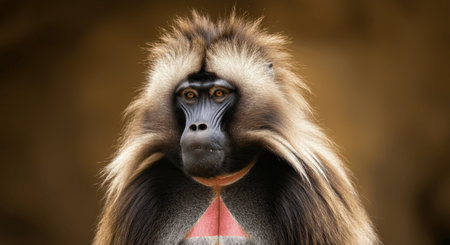 Portrait of majestic gelada baboon with striking mane in natural habitat