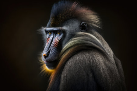 Frontal Portrait of a Male Mandrill Lit from Behind. Generative AI