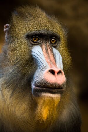 Portrait of Mandrill, Mandrillus sphinx, primate of the Old World monkey family