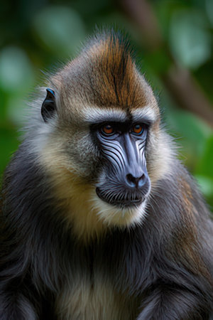 Mandrill Monkey portrait in natural jungle habitat setting