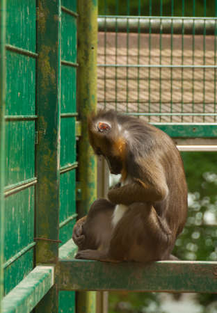 Mandrill monkey in a cage at the zoo, bright face
