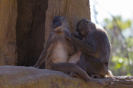 Mandrill Baboon (Mandrillus sphinx) scratching back