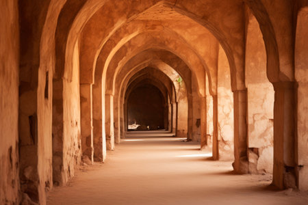 a perspective view of interior of hindola mahal(swinging palace) in mandu, madhya pradesh, india