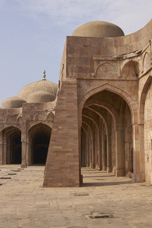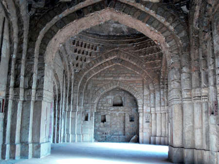 Mandu India, afghan ruins of islam kingdom, mosque monument and muslim tomb. Architectural details.