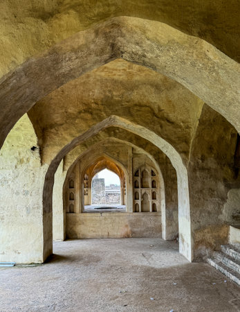 Historical architecture at Golkonda Fort, Hyderabad, India