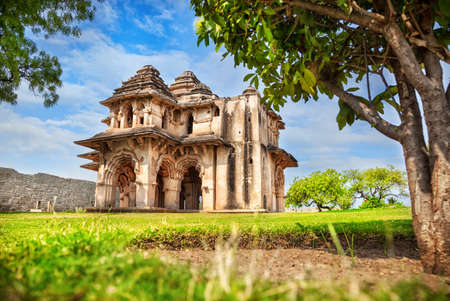 Lotus Mahal in royal center at blue sky in Hampi, Karnataka, India