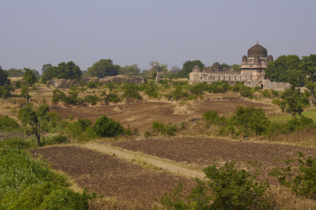 Mandu India, afghan ruins of islam kingdom, mosque monument and muslim tomb. Jahaz Mahal.