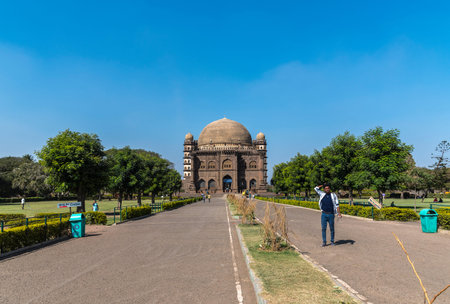Vijaypura, India - February 15, 2019: Group of tourist walking towards the UNESCO World Heritage Site, Gol Gumbaz at Vijaypura, Karnataka, India.