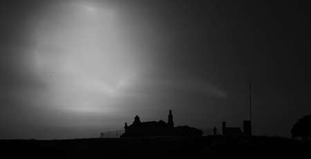 Grassy hilltop dawn cold in dark old tone.
