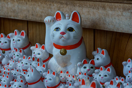 Lucky cat dolls on shelf Maneki neko Japan traditional doll