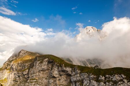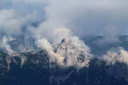 Dramatic and Beautiful Clouds in High Mountains in Julian Alps, Slovenia.