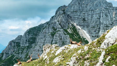Steinbocks on the Mount Montasio in the Julian alps, in a summer day
