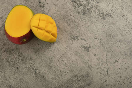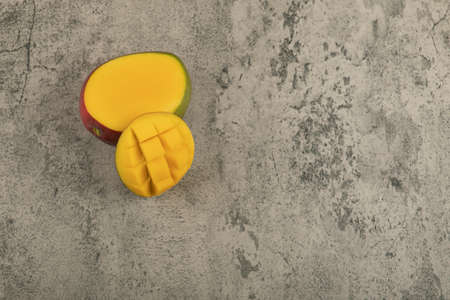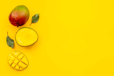 Top view of yellow mango, Tropical fruit juicy and sweet. Copy space