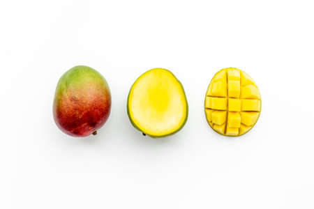 Tropical fruit, Mango on white background. Top view