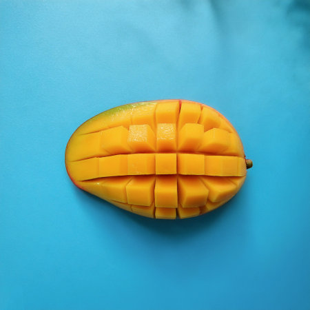 Mango sliced on a blue background