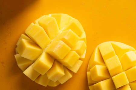 Top view of yellow mango, Tropical fruit juicy and sweet.