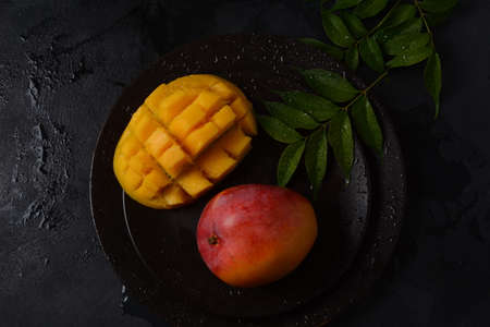 Tropical fruit, Mango on dark background.