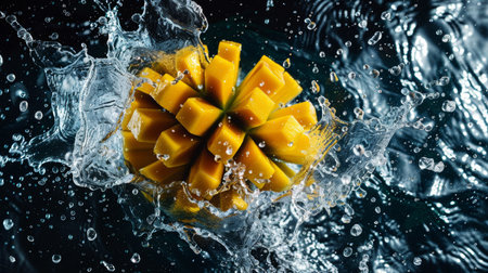 Energizing Fruit Splash, Ripe Mango in Refreshing Splash