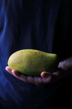Hands hold mango. Fresh fruit. Tropical fruit for good eating health care.