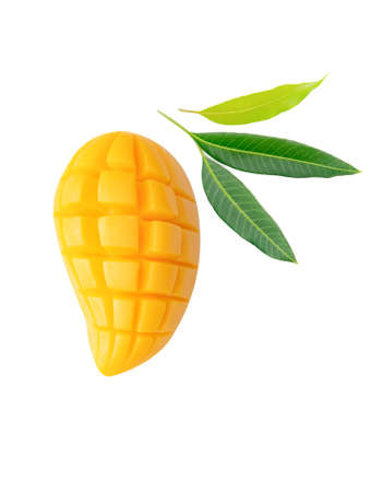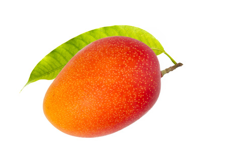 Mango tropical fruit and leaf isolated white background.