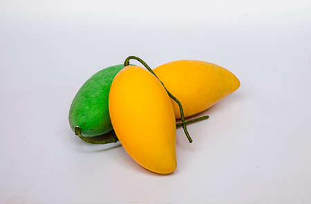 Yellow mango, favorite Thai fruit, isolated on white background. ECO, environmentally friendly product. Copy space.