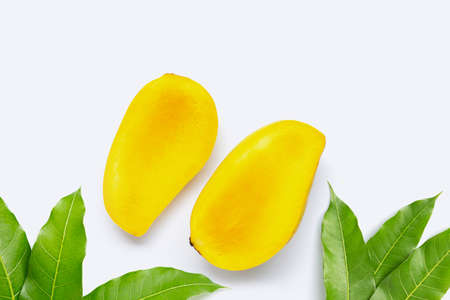 Mango fruit yellow isolated on white background, top view, healthy food concept.