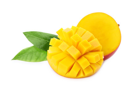Cut fresh mango on white background
