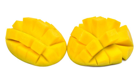 Chopped mango isolated on white background. Juicy fruit