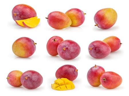 Set of mangoes isolated on white background