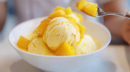 mango ice cream close up, top view, sweet mango. High quality illustration.Generative AI