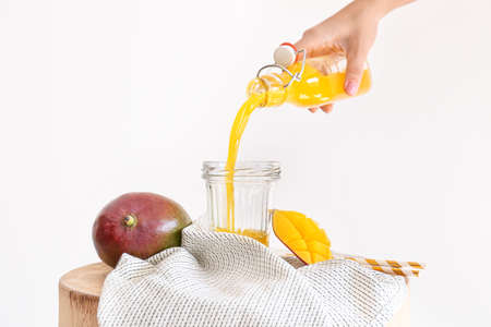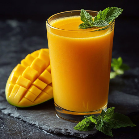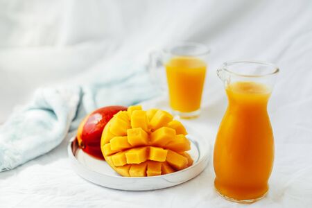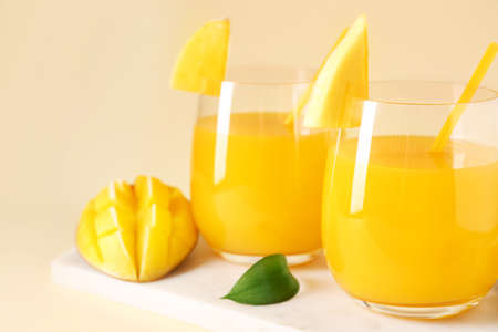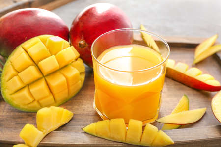 Mango juice. Fresh fruits. Exotic fruit and rich in fiber. Detox and antioxidant drink. Natural health. Refreshing drink. Tasty food. Culinary delicacy. Ingredient for desserts
