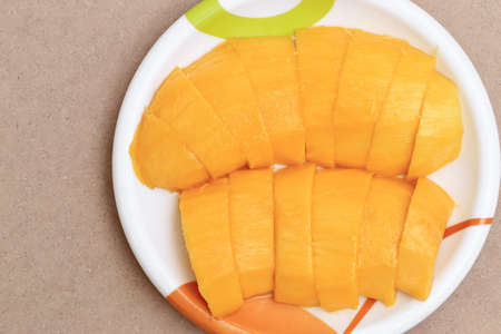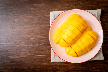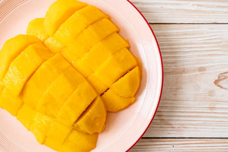 fresh and golden mango sliced on plate