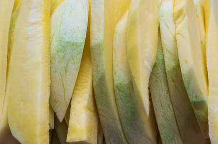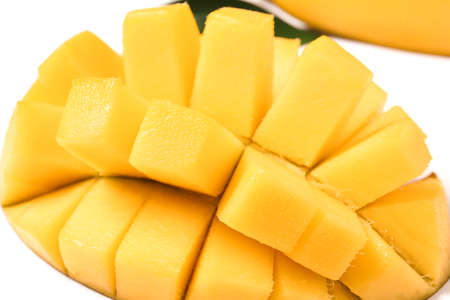 Close up rip mango slice cubes cut