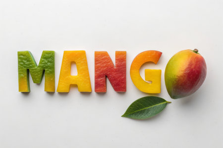Mango fruit yellow isolated on white background, top view, healthy food concept.