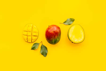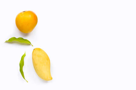 Mango fruit yellow isolated on white background, top view, healthy food concept.