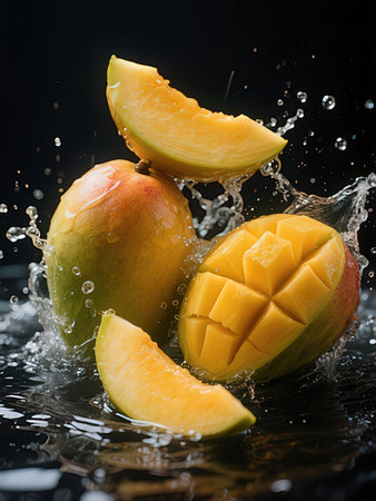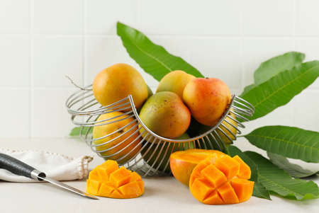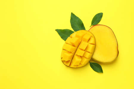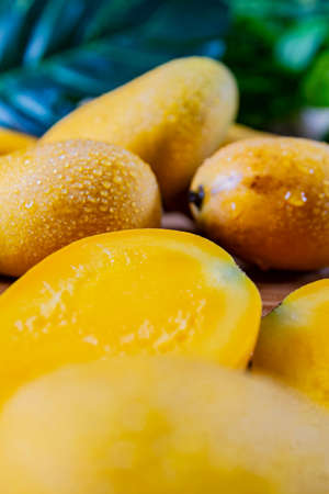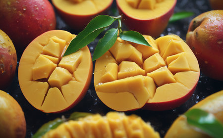 Tropical healthy fruit ripe organic mango close up in pieces ready to eat